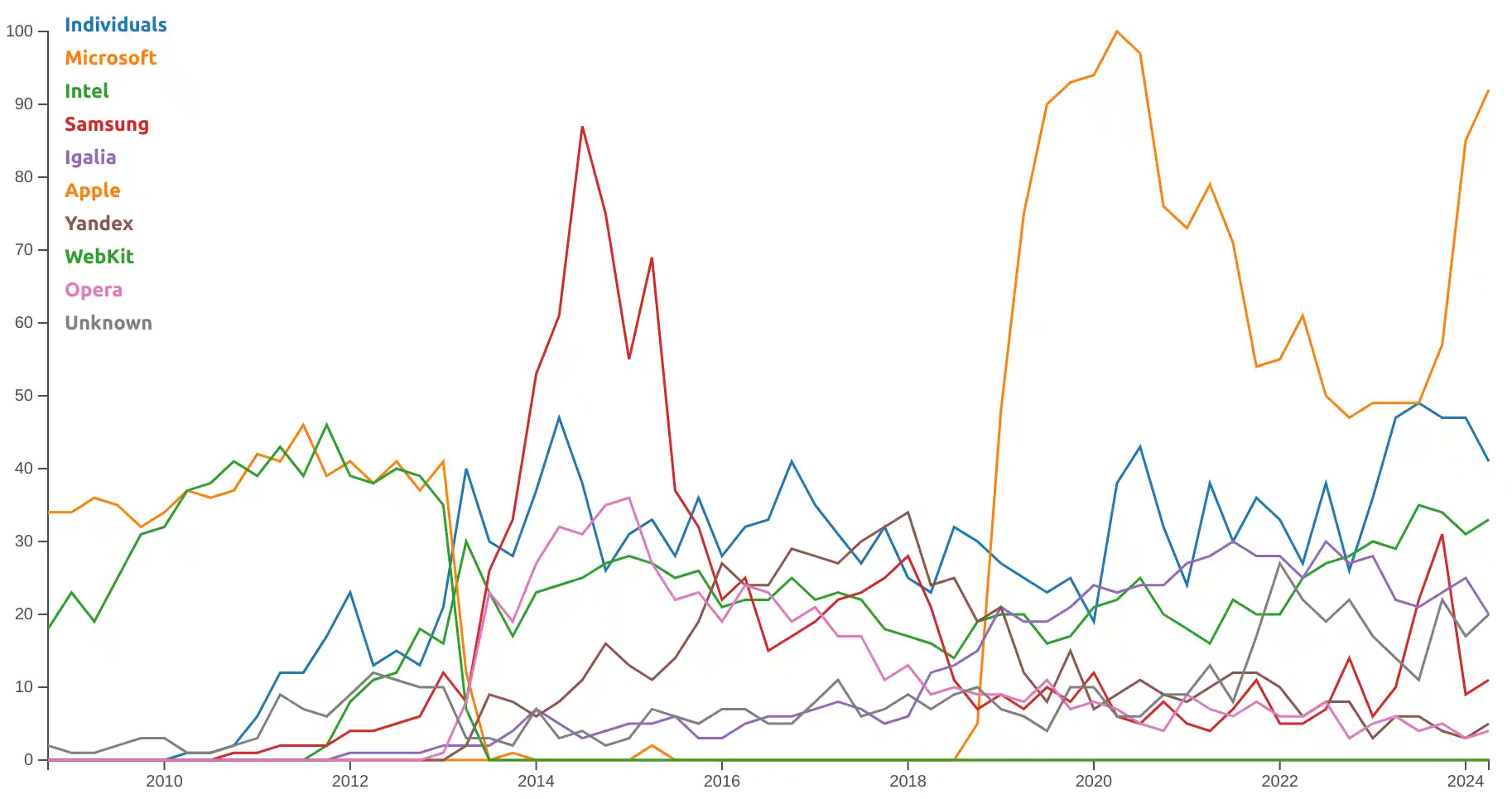 patches to Chromium, consistently more than